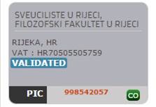 PIC broj Filozofskog fakulteta u Rijeci (Participant Idenitification Number):